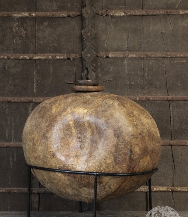 Unieke antieke desert pot, met de hand vervaardigd en bekleed met karaktervol leder. De natuurlijke textuur en warme tinten geven elk stuk een eigen uitstraling. Een authentiek en decoratief object dat sfeer, ambacht en exclusiviteit samenbrengt.