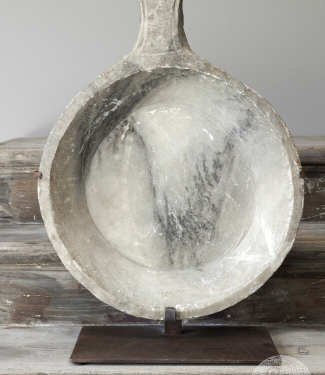 Deze prachtige antieke schaal op standaard is een plaatje om te zien. De schaal is gemaakt van marmer en is een uniek exemplaar. Het beeld komt uit India en heeft een authentieke uitstraling. Dit zorgt ervoor dat hij prachtig staat in een landelijk interieur.