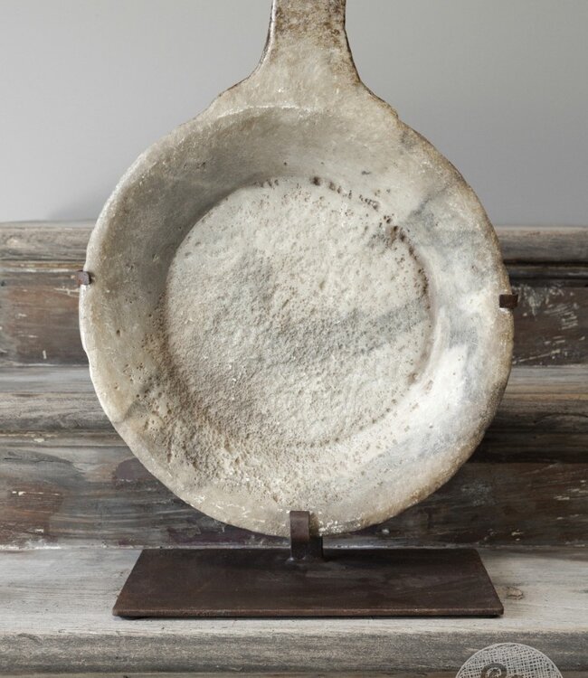Deze prachtige antieke schaal op standaard is een plaatje om te zien. De schaal is gemaakt van marmer en is een uniek exemplaar. Het beeld komt uit India en heeft een authentieke uitstraling. Dit zorgt ervoor dat hij prachtig staat in een landelijk interieur.
