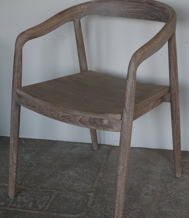 Armstoel Zira is een comfortabele landelijke stoel gemaakt van teakhout en uitgevoerd in een watervaste vergrijsde kleur. De afmetingen zijn 77 cm hoog, 54 cm breed en 50 cm diep. En de armhoogte is 69 cm. De armstoel is mooi te gebruiken als set om de eettafel.