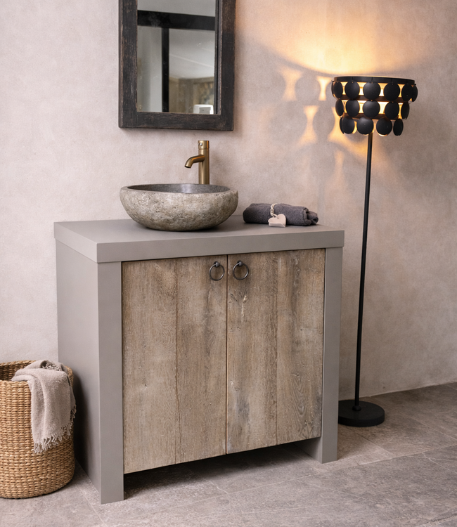 Badkamermeubel Stockholm is een plaatje om te zien. Het meubel van 85 cm hoog is rondom geverfd in donkergrijs, de deurtjes zijn van eikenhout en zijn voorzien van soft-close systeem. Het meubel kan aangevuld worden met vele opties zoals waskom, spiegel, kraan, etc. Dit landelijk badkamermeubel kan via het keuzemenu volledig besteld worden met afvoergaten en/of behandeld. Te bestellen in het keuzemenu in de breedtes 80 t/m 120 cm. Getoonde prijzen zijn inclusief verzending NL + BE.