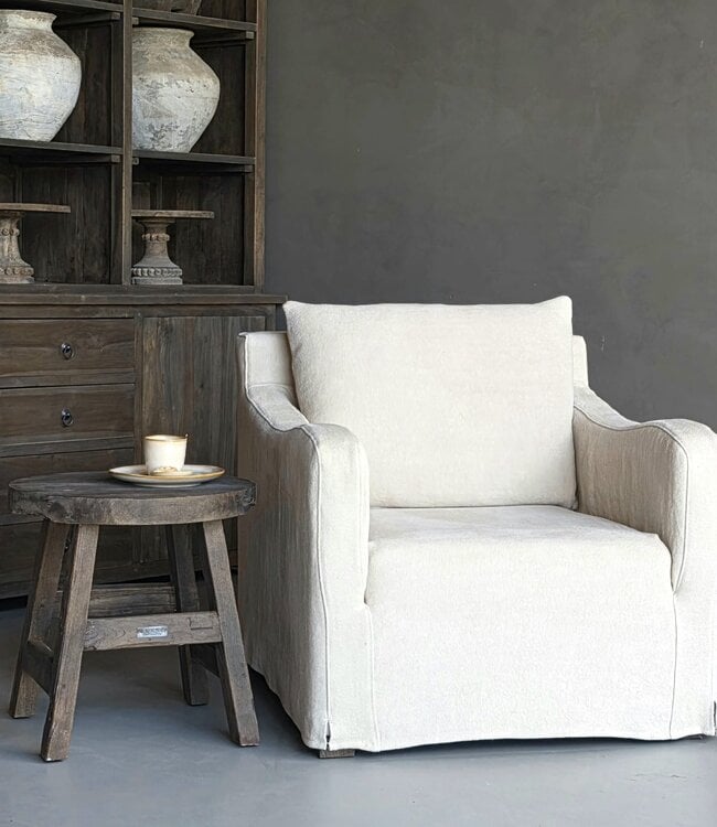 Wat een plaatje om te zien, bijzettafel Josefien. Het tafeltje is ontstaan doordat er een dienblad op een tafeltje stond, en dat eigenlijk wel super mooi stond! Het tafeltje is voorzien van een hengsel en staat stevig op 3 poten met een opzetplateau onderin. Het tafeltje is 60 cm hoog en 50 cm rond.