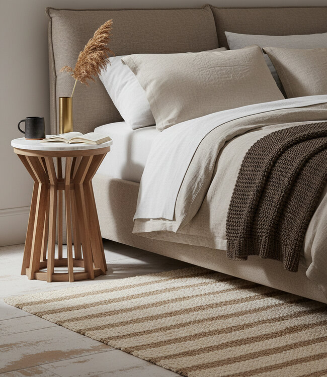 De Sarawak bijzettafel - Marmeren bijzettafel van hoge kwaliteit met een onderstel van mangohout De Sarawak bijzettafel is een chique en rustgevende toevoeging aan elk interieur. Het ronde tafelblad van wit marmer rust op een licht en luchtig frame van mangohout, waardoor de tafel een elegante en verfijnde uitstraling heeft. Het gebruik van natuurlijke materialen zorgt voor een warm en uitnodigend gevoel. Dankzij het tijdloze ontwerp past deze marmeren bijzettafel moeiteloos bij diverse interieurstijlen, van Scandinavisch en modern tot klassiek of bohemien. Plaats het naast de bank in de woonkamer of gebruik het als een stijlvol tafeltje voor decoratieve items.