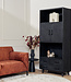 Boekenkast Omaha Black is volledig vervaardigd uit mangohout en combineert vakmanschap met een eigentijdse uitstraling. Het model heeft twee lades en twee deuren; het meubel is ingelegd met meerdere stroken zwart gelakt hout, wat zorgt voor een karakteristiek en modern accent.
