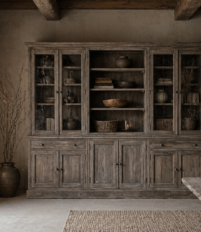 Deze buffetkast in de kleur antique grey kenmerkt waar Luksa voor staat, sfeervol wonen. Deze geweldige kast is voorzien van 10 deurtjes en 2 lades. De kast is opgebouwd uit 9 elementen zodat de kast gemakkelijk op iedere plek in huis geplaatst kan worden. De kast past niet alleen in een landelijk interieur maar ook in een modern interieur.