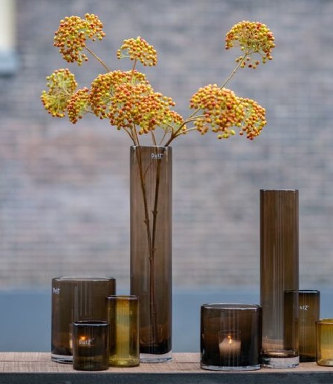 De mond geblazen cilinder vaas in de kleur topaz, is een echte klassieker! Dit model is een echte eyecatcher in de collectie en perfect met één of meerdere bloemen. Deze glazen vaas is trendy en hip en geeft elk interieur een moderne twist.