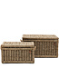 Deze Cardova Trunk Set bestaat uit twee opbergmanden met een scharnierend deksel. Deze manden kunnen worden gebruikt om spullen op te bergen, maar ook als salontafel met bijvoorbeeld een mooie dienblad erop. De gevlochten details geven de manden een natuurlijke en frisse uitstraling.