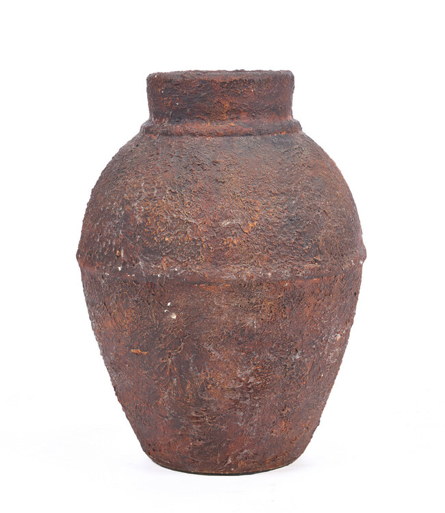 De Amphora Rustica‑vaas herinterpreteert de rustieke aardewerkvorm met een beheerste combinatie van culturele diepgang en hedendaagse elegantie. Het bordeauxrode terracotta heeft een voelbaar getextureerd oppervlak dat zowel traditioneel vakmanschap als moderne esthetiek oproept. Krachtige, architectonische contouren benadrukken de vorm, terwijl de natuurlijke kleigrain de uitstraling verzacht en subtiele nuances aanbrengt. Met een doordachte verhouding voor veelzijdig gebruik plaatst deze terracotta vaas zich moeiteloos op planken, consoles en eettafels. Hij draagt seizoensgebonden stelen en gedroogde arrangementen met evenveel waardigheid als hij op zichzelf staat als sculpturaal object wanneer hij leeg wordt gepresenteerd. De gedempte antieke tinten geven de ruimte een tijdloze, verzamelde uitstraling. Elke vaas is volledig met de hand gevormd; kleur- en textuurvariaties zijn zichtbare tekenen van de maker en geven ieder exemplaar een authentieke diepgang en onherhaalbare identiteit. Producttype: Plantenbakken & vazen. Kleur: bordeaux. Materiaal: terracotta. Land van herkomst: Indonesië. Afmetingen: 30x20x20 cm