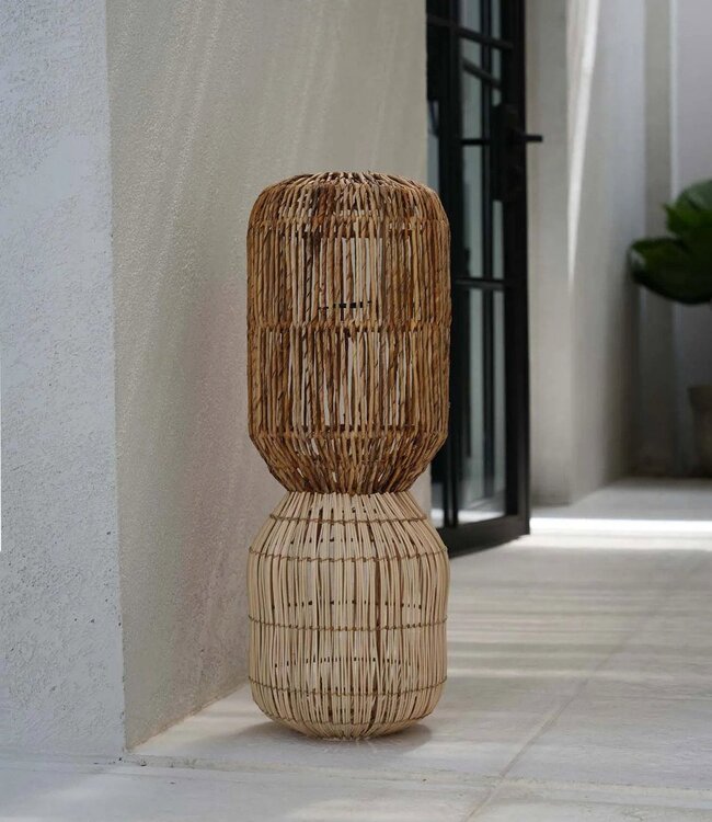 Breng wat leven in uw interieur met de ChemChem Pendant, een prachtige samensmelting van natuurlijke texturen en ingetogen elegantie. Met de hand geweven van bananenblad en rotan, straalt de gelaagde vorm een zachte, aardse uitstraling uit. Hang deze lamp boven uw eettafel of gebruik hem als vloerlamp om een warme, rustgevende sfeer te creëren. Ideaal voor boho-, rustieke of kustgerichte interieurs, deze lamp voegt ritme en karakter toe zonder te dominant te zijn. De kap wordt geleverd zonder bedrading of stekker, waardoor u deze kunt combineren met een plafond- of stekkeraansluiting naar keuze, apart verkrijgbaar in onze winkel. Inbegrepen: - Kabel en fitting: Nee (gebruik een standaard E27 fitting) - Breedte: 25 cm - Lengte: 25 cm - Materialen: Bananenblad - Rattan - Verzendingstype: Pakket - Kleur: Natuurlijk - Land van herkomst: Indonesië - Hoogte: 70 cm Voeg vandaag nog een vleugje natuurlijke schoonheid toe aan uw ruimte met de ChemChem Pendant!