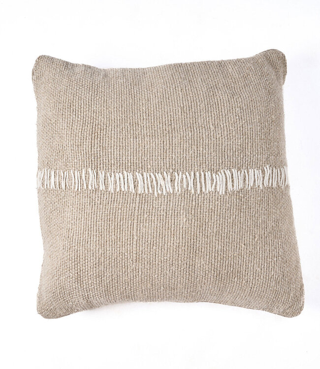 De Linnen Stitch kussenhoes verwelkomt uw interieur met ingetogen charme en tijdloze elegantie. Gemaakt van hoogwaardig linnen in een subtiele natuurlijk-witte tint, is de hoes voorzien van een lichte streep die centraal door het midden loopt en een verfijnd accent toevoegt. De afmetingen en vormgeving zijn afgestemd op zowel bed als bank en combineren dagelijks comfort met zorgvuldige, ambachtelijke afwerking. De stof voelt ademend, aangenaam en duurzaam aan, geschikt voor frequent gebruik zonder in te boeten op comfort. Elke hoes is met de hand vervaardigd van milieubewuste materialen; kleine variaties in kleur en weefstructuur kunnen voorkomen en benadrukken de uniciteit van het handwerk. Productgegevens: producttype — kussen; kleur — natuurlijk wit; materiaal — linnen; land van herkomst — India.