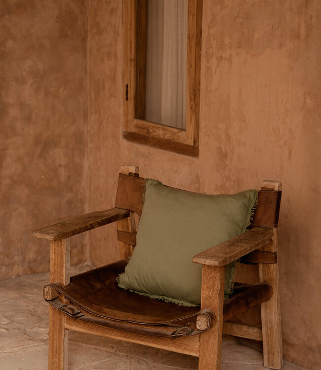 Rustige verfijning kenmerkt de Minty Fresh-kussenhoes: een saliegroene hoes die interieurs onmiddellijk verzacht dankzij haar ingetogen allure en veelzijdige persoonlijkheid. Tijdloos en toepasselijk bij zowel neutrale tinten als contrasterende accenten, vormt zij een geraffineerde toevoeging aan moderne woonstijlen. Het vierkante formaat van 50 x 50 cm biedt een royaal draagvlak, ideaal voor lagen op bank, fauteuil of bed. De gedempte groentint voegt subtiele warmte toe en sluit naadloos aan bij Scandinavische en hedendaagse interieurs. De linnen kwaliteit combineert stevigheid en ademend vermogen, waardoor de hoes bestand is tegen dagelijks gebruik en tegelijkertijd een verfijnde, natuurlijke textuur behoudt. Met de met de hand afgewerkte randen en fijne franje komen ambachtelijke details tot uiting; lichte variaties in tint en weefsel benadrukken de individualiteit van elk exemplaar en geven de hoes een genuanceerde, geleefde elegantie.