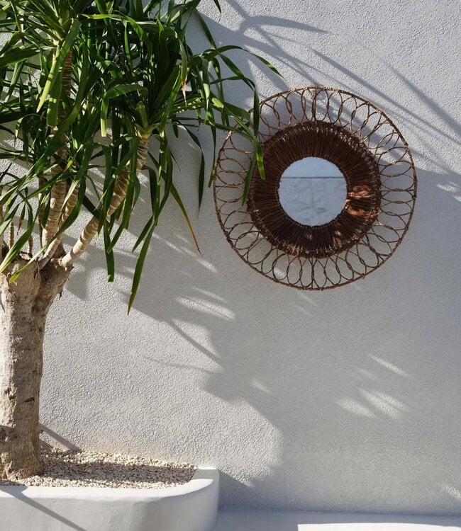 Introduce de essentie van de natuur en geschiedenis in jouw huis met de Montezuma Spiegel. Vernoemd naar de legendarische Azteekse keizer, Montezuma, symboliseert deze spiegel kracht, schoonheid en een connectie met de aarde. Ideaal voor gangen, slaapkamers of woonruimtes, voegt de Montezuma Spiegel diepte, warmte en textuur toe aan elke kamer. Door zijn natuurlijke tinten en ingewikkelde details is het meer dan slechts een spiegel.