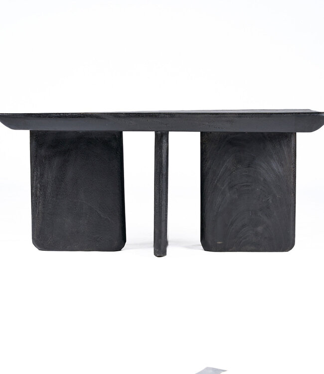 De Obsidian salontafel brengt een ingetogen architectuur in de woonruimte. Als zwarte salontafel geeft haar krachtige, evenwichtige vorm visuele aanwezigheid en rust; ze definieert een kamer vanuit haar verankerde silhouet. Het royale blad biedt ruimte voor gesprekken, boeken en dagelijkse voorwerpen, terwijl het lage, stabiele profiel ruimtelijkheid en vloeiendheid bevordert. Ontworpen voor moderne interieurs, combineert de tafel moeiteloos met natuurlijke tinten, linnen of steen en creëert zodoende een opvallende dieptewerking. Gemaakt in Indonesië van duurzaam gewonnen mangohout, draagt elk exemplaar de sporen van vakmanschap: subtiele textuur en wisselende houtnerf maken elk stuk uniek. De matte zwarte afwerking verzacht de strakke geometrie en voegt een organische warmte toe die met gebruik verdiept.