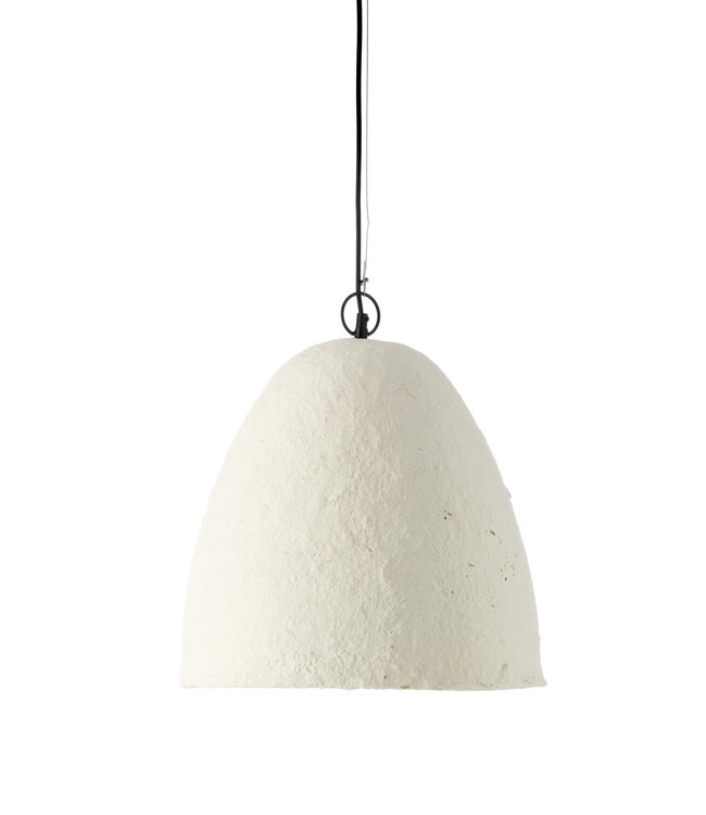 Licht krijgt bij de Savana-hanglamp een onverwachte vorm: schijnbaar eenvoudig, maar bij nadere inspectie onthult het oppervlak diepte en de eerlijkheid van de constructie. Deze grote, witte hanglamp van papier-maché combineert ingetogen drama met een ruwe textuur en een subtiele, sculpturale terughoudendheid. Geplaatst boven de eettafel, in een open loft of laag boven een keuken-eiland, vertaalt de schaal van de lamp aanwezigheid zonder te overweldigen; het uitgestraalde licht blijft tegelijkertijd warm en intiem. De Savana transformeert interieurs tot zorgvuldige, uitnodigende omgevingen die zowel gesprekken als stilte faciliteren. Elk exemplaar is met de hand vervaardigd, wat resulteert in kleine variaties in tint en textuur. Deze verschillen zijn geen gebreken maar authentieke kenmerken van ambachtelijke productie, die garanderen dat geen twee lampen hetzelfde zijn. Producttype: hanglamp. Kleur: wit. Materiaal: papier-maché. Land van herkomst: India.