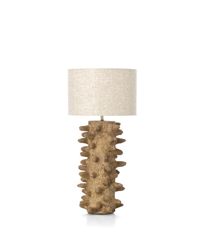 De Spiketacular tafellamp combineert contrast en geraffineerde speelsheid. Deze grote tafellampen, vervaardigd uit papier-maché, verenigen sculpturale vormgeving met een tactiele, aardse afwerking. Het royale silhouet en de matte, modderkleurige toets maken van licht een object met karakter en verfijning. Plaats de lamp naast een leesstoel, als verankerend element op een console of in paren voor symmetrie; het zachte, gediffuseerde licht verrijkt zowel functie als sfeer. De lamp is opvallend aanwezig en tegelijk veelzijdig, geschikt voor zowel intieme hoeken als ruime interieurs. Elke Spiketacular wordt met de hand gemaakt, waardoor geen enkel exemplaar identiek is. Subtiele variaties in kleur en textuur weerspiegelen het vakmanschap en geven ieder stuk een unieke identiteit.