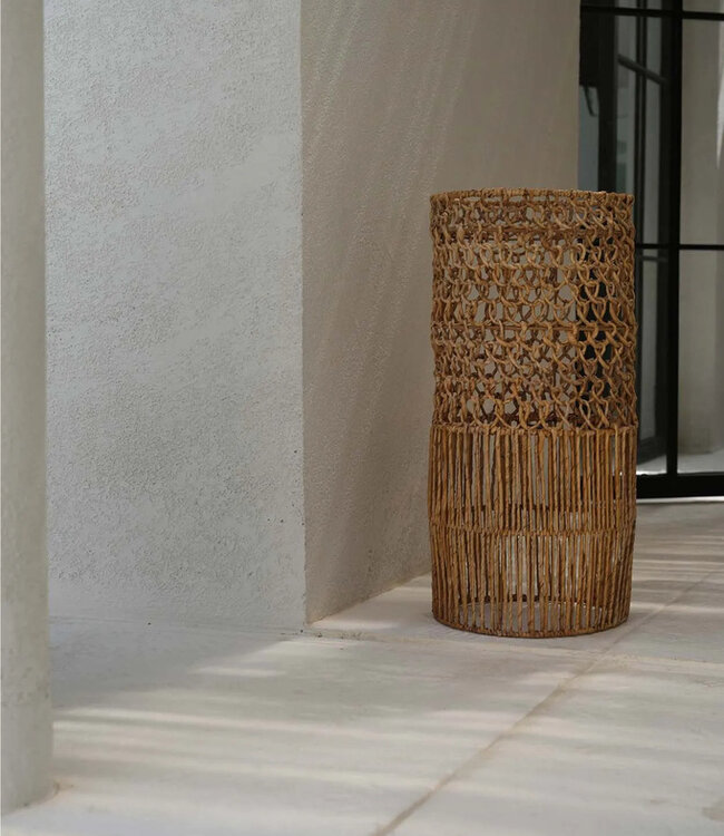 The Takuhanki lamp, handgemaakt van bananenblad, is een prachtig stuk dat zowel als hanglamp en vloerlamp werkt. De naam, afgeleid van het Japanse woord voor "afdruk," weerspiegelt het onvergetelijke ontwerp, dat diepte en textuur toevoegt aan elke ruimte. Ideaal voor eetruimtes, slaapkamers of woonruimtes, combineert de Takuhanki hanglamp aardse tonen en een sculpturale vorm om karakter en stijl toe te voegen aan je interieur. Deze lampenkap heeft geen elektrische bedrading of stekkers. Wij verkopen deze bevestigingen apart, zowel voor plafondmontage als met stekker. Zoek alstublieft naar een fitting in onze winkel en kies uw gewenste uitstraling en type. Hoogte (cm): 67 Kabel en fitting inbegrepen: Nee (gebruik een standaard E27 fitting) Land van herkomst: Indonesië Materialen: Bananenblad Kleur: Naturel Verzendingstype: Pakket Lengte (cm): 32 Breedte (cm): 32