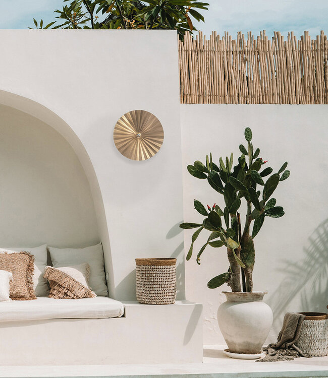 Breng oosters design in uw woonruimte met deze prachtige wandlamp. Het ronde ontwerp, volledig gemaakt van ijzer in een mooie messing tint, reflecteert het licht op een manier die een schitterend effect creëert. Deze lamp is perfect voor een donkere hal, de badkamer of zelfs voor het opfleuren van een lege muur in uw woonkamer. Het is niet zomaar een lamp, het is een echt designstuk! Specificaties: - Kleur: Messing - Afmetingen (H x B x L): 60 cm x 14 cm x 60 cm - Materiaal: Ijzer - Inclusief bekabeling: Ja (E27 standaard formaat fitting)