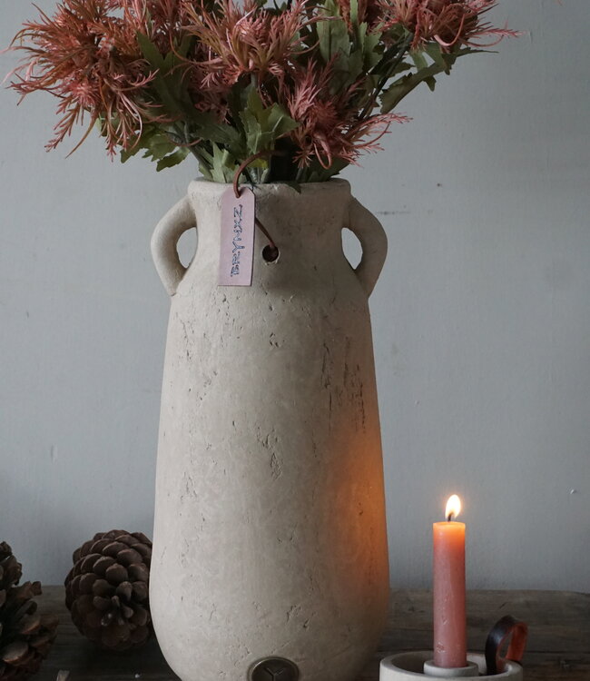 Breng sfeer in huis met deze stijlvolle dinerkaarshouder in Majestic Taupe. Het robuuste ontwerp en de zachte, neutrale kleur zorgen voor een warme, rustieke uitstraling. Perfect voor een gezellige tafelsetting of als subtiel decoratief accent in elk interieur.