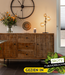 Het dressoir Brandy is vervaardigd uit mangohout met een metalen poot. Dit model is voorzien van twee deuren en 3 lades. De kast is versierd met verschillende stroken gelakt hout. Het gesneden blokkenpatroon geeft de woonserie Brandy van Starfurn een unieke uitstraling. Afmetingen: Breedte: 160 cm Diepte: 40 cm Hoogte: 90 cm Onderhoud: Afvegen met een vochtige doek.