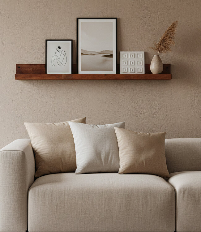 Geef uw foto’s, posters en favoriete tijdschriften een stijlvolle uitstraling met de Factory wandplank — een geraffineerde combinatie van functionaliteit en industrieel karakter. De subtiele opstaande rand aan de voorzijde maakt deze plank uitermate geschikt als picture ledge: lijsten plaatst u eenvoudig op de plank en wisselt u zonder nieuwe gaten in de muur te boren. Het slanke ontwerp neemt weinig ruimte in beslag; het robuuste, donkere hout voegt direct sfeer en warmte toe aan elk interieur. Duurzaamheid en herkomst De Factory-collectie bestaat uit meubels vervaardigd van 100% FSC-gerecycled hout. Het materiaal is herwonnen uit oude huizen, verlaten fabrieken en gebruikte vloerdelen of wandpanelen. Jarenlang gebruik heeft het hout een rijke, warme patina gegeven die elk meubelstuk uniek maakt. Het FSC Recycled-keurmerk waarborgt dat het hout verantwoord is verkregen, waardoor u kiest voor een milieubewuste en kwalitatieve oplossing voor uw interieur. Onderhoud en behandeling Het gerecyclede hout is van nature sterk en behoeft weinig onderhoud. Een afnemen met een licht vochtige doek volstaat om de plank stofvrij te houden. Wilt u de diepe, warme kleur na verloop van tijd versterken, dan raden wij een behandeling met blanke boenwas of een natuurlijke houtolie aan om de patina te beschermen en te behouden. Toepassing en sfeer Stel u een persoonlijke galerie voor aan uw wand: twee planken speels boven elkaar geplaatst, met op de onderste plank een ingelijste foto en een klein vetplantje, en op de bovenste plank uw mooiste kunstboeken en ansichtkaarten. Dankzij de opstaande rand staat alles veilig en stevig. Ook in kinderkamers vormt de plank een aantrekkelijke manier om prentenboeken en decoratie te tonen. De warme, donkere tint van het hout versterkt de uitstraling van uw objecten en geeft meteen meer karakter aan de ruimte. Voordelen in één overzicht - Subtiele opstaande rand: veilig presenteren van fotolijsten, boeken en accessoires. - 100% FSC-gerecycled: duurzaam hergebruikt hout met een ecologisch keurmerk. - Uniek karakter: elk stuk heeft zijn eigen geschiedenis en patina. - Flexibele decoratie: eenvoudig wisselen zonder extra gaten in de muur. - Tijdloos design: geschikt voor industriële, moderne en landelijke interieurs.
