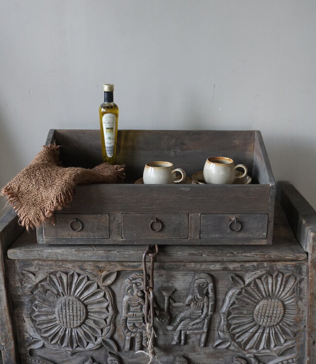 Breng sfeer en praktische opbergruimte in huis met deze gruttersbak met 3 lades. De bak heeft een stoere, landelijke uitstraling en past perfect in een landelijk interieur. Gebruik hem in de keuken, woonkamer of hal voor een opgeruimd en stijlvol geheel.