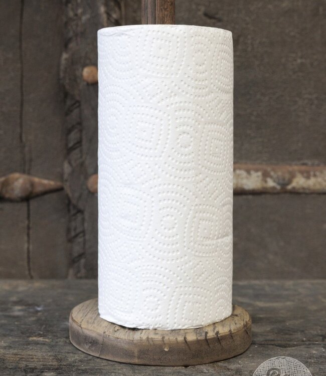 De keukenrolhouder Thijs is de perfecte accessoire voor in de keuken. De houder is functioneel, maar ook erg stijlvol in een landelijke keuken. De keukenrolhouder is gemaakt van oud hout. De hoogte van de houder is 29 cm en de bodem heeft een diameter van 14 cm.