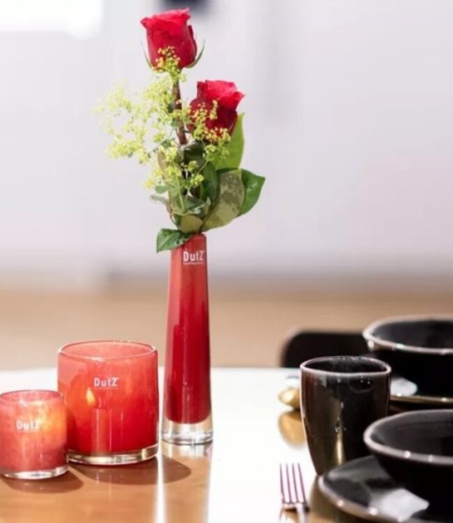 Elke DutZ vaas/kaarsenglas is een unica! Elke glazen vaas is mondgeblazen door glasblazers uit onze Europese glasfabrieken. Elk product kan dus qua kleur en vorm licht afwijken van de afbeeldingen. Kleine afwijkingen zoals belletjes en krasjes zijn geen defecten maar een gevolg van het ambachtelijke proces van traditioneel glasblazen. Ze verrijken het product en geven het een unieke uitstraling.