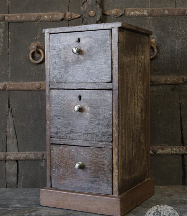Klein ladekastje uit India met een unieke, handgemaakte uitstraling. Dit authentieke meubelstuk weerspiegelt traditioneel vakmanschap en rijke Indiase cultuur. Een sfeervol en karaktervol object dat warmte en tijdloze charme toevoegt aan elk interieur.
