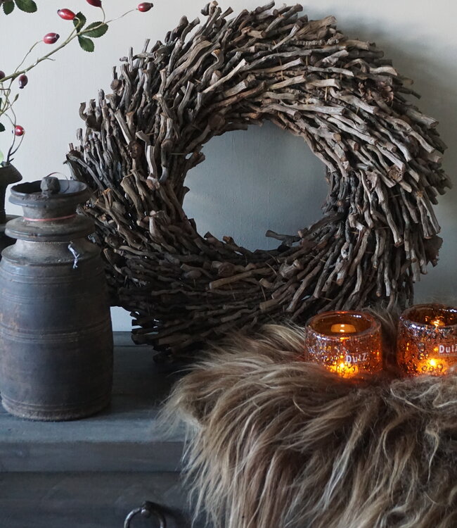 Geef een landelijke sfeer aan uw interieur met deze prachtige krans! De krans is gemaakt van gedroogde takjes en heeft een robuust uiterlijk, wat perfect past in een landelijke ruimte. De krans is op meerdere manieren te stylen: met een windlicht, staand of hangend aan de muur.