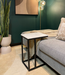 Deze elegante slider is voorzien van een wit marmeren blad en een frame van hoogwaardig metaal met een zwarte afwerking. Afmetingen: - Breedte: 40 cm - Diepte: 30 cm - Hoogte: 54 cm Voor het onderhoud volstaat het om af te nemen met een licht vochtige doek.