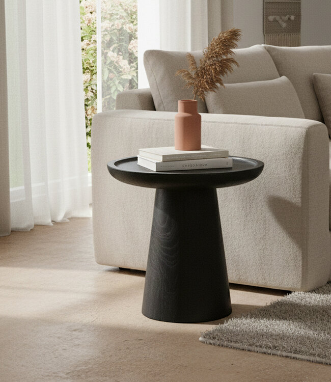 De Nero Dusk bijzettafel is een verfijnd, hedendaags meubelstuk met een warm karakter. Het massieve teakhouten blad en de strakke, tijdloze vormgeving geven de tafel een moderne uitstraling die naadloos aansluit bij uiteenlopende interieurstijlen. Zet de tafel solo naast een bank of combineer haar met een lagere variant uit de Nero‑serie voor een speels en gelaagd effect. Verkrijgbaar in de kleur Black en in een natuurlijke teakkleur. Duurzaamheid en vakmanschap Het teak voor de Nero‑collectie is afkomstig van verantwoord beheerde plantages in Indonesië. Sinds 2016 ziet de overheid toe op een traceerbare en legale houtketen, zodat elk meubelstuk van aantoonbare herkomst is. De keuze voor Nero Dusk betekent daarmee een bewuste investering in kwaliteit en milieubewust produceren. Onderhoud en gebruik Het hout is afgewerkt met een watergedragen coating die beschermt tegen vocht en vlekken. Veeg gemorste vloeistoffen direct op en reinig de tafel met een zachte, licht vochtige doek; agressieve schoonmaakmiddelen worden afgeraden. Kleine krasjes of onregelmatigheden kunnen eenvoudig worden bijgewerkt met een transparante of lichtgekleurde meubelolie. Waarom kiezen voor Nero Dusk - Gemaakt van duurzaam Indonesisch teak van traceerbare herkomst - Tijdloos en modern design, geschikt voor diverse interieurs - Verkrijgbaar in meerdere kleuren en formaten - Makkelijk te combineren binnen de Nero‑collectie - Duurzaam geproduceerd en onderhoudsvriendelijk De Nero Dusk bijzettafel brengt warmte en rust in uw interieur en behoudt met de juiste verzorging haar karakter en kwaliteit door de jaren heen.