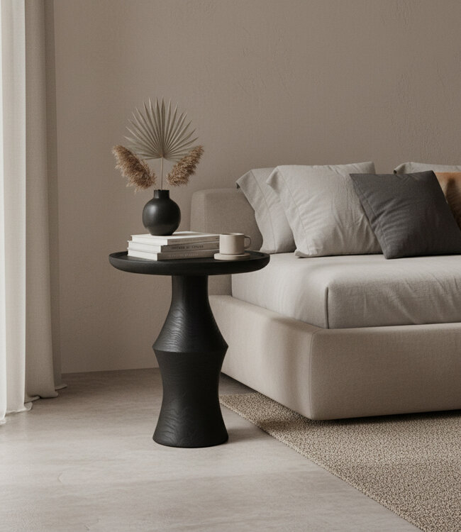 De Nero Twilight bijzettafel combineert een teakhouten blad met een strakke, moderne vormgeving, waardoor zij moeiteloos aansluit bij uiteenlopende interieurstijlen. De tafel komt bijzonder tot zijn recht als soloaccent naast een bank, maar vormt ook een stijlvol duo in combinatie met een lagere variant uit dezelfde collectie. Verkrijgbaar in zwart en in een natuurlijke teakkleur. Collectie en herkomst De Nero-collectie is vervaardigd van duurzaam teakhout uit Indonesië, afkomstig van verantwoord beheerde plantages waar na kap herbeplanting plaatsvindt. Sinds 2016 geldt er streng toezicht op de herkomst van teak, waardoor elk meubelstuk traceerbaar en legaal verkregen is. Met de Nero Twilight kiest u voor vakmanschap dat zowel esthetisch als ecologisch bewust is. Onderhoud en duurzaamheid Het hout is behandeld met een watergedragen beschermcoating tegen vocht en vlekken. Desondanks verdient het de voorkeur gemorste vloeistoffen direct te verwijderen om kringen te voorkomen. Reinig de tafel met een zachte, lichtvochtige doek en vermijd agressieve schoonmaakmiddelen. Kleine krasjes of onregelmatigheden zijn eenvoudig bij te werken met een transparante of lichtgekleurde meubelolie. Kenmerken - Tijdloos en modern design - Verkrijgbaar in meerdere kleuren en formaten - Combineerbaar met andere tafels uit de Nero-collectie - Duurzaam geproduceerd en onderhoudsvriendelijk De Nero Twilight bijzettafel brengt warmte en rust in uw interieur en behoudt met de jaren zijn karakter en kwaliteit.