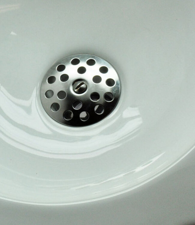 Chromen afvoerplug met gaatjes. Zorgt voor een goede waterafvoer en een nette afwerking van de wastafel of waskom. Geschikt voor standaard afvoeren en professioneel afgewerkt voor dagelijks gebruik.