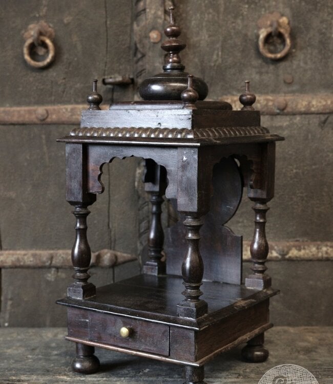 Origineel oud huis-tempel uit India met een unieke, doorleefde uitstraling. Dit authentieke stukje architectuur weerspiegelt traditioneel vakmanschap en rijke Indiase cultuur. Een karaktervol decoratief object dat historie, sfeer en tijdloze charme toevoegt aan elk interieur.