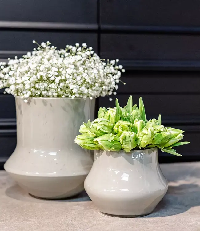 Elke Dutz vaas is uniek! Elke glazen vaas is mond geblazen door glasblazers uit Europese glasfabrieken. Elk product kan dus qua kleur en vorm licht afwijken van de afbeeldingen. Kleine afwijkingen zoals belletjes en krasjes zijn geen defecten maar zijn een gevolg van het ambachtelijke proces van traditioneel glasblazen. Ze verrijken het product en geven het een unieke uitstraling.