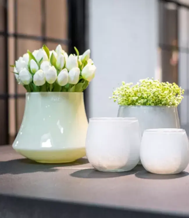 Elke Dutz vaas is uniek! Elke glazen vaas is mond geblazen door glasblazers uit Europese glasfabrieken. Elk product kan dus qua kleur en vorm licht afwijken van de afbeeldingen. Kleine afwijkingen zoals belletjes en krasjes zijn geen defecten maar zijn een gevolg van het ambachtelijke proces van traditioneel glasblazen. Ze verrijken het product en geven het een unieke uitstraling.