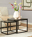 De salontafelset Daan bestaat uit een tafelblad van zwart marmer en een metalen onderstel met een zwarte lakafwerking. Afmetingen: - Breedte: 50/40 cm - Diepte: 50/40 cm - Hoogte: 45/40 cm - Bladdikte: 2 cm Voor onderhoud, simpelweg afnemen met een licht vochtige doek.