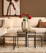 De salontafelset Joelle van drie tafels is vervaardigd uit aluminium met een strak metalen onderstel. Dankzij de verschillende hoogtes zijn ze veelzijdig te gebruiken, wat zorgt voor een speels en stijlvol effect in elke woonkamer. Afmetingen grote tafel: - Breedte: 70 cm - Diepte: 70 cm - Hoogte: 40 cm Afmetingen middelste tafel: - Breedte: 60 cm - Diepte: 60 cm - Hoogte: 48 cm Afmetingen kleine tafel: - Breedte: 44 cm - Diepte: 44 cm - Hoogte: 36 cm Onderhoud: Afvegen met een vochtige doek.