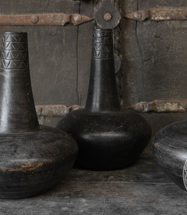 Set van 3 vintage kruiken uit India met een unieke, doorleefde uitstraling. Elk stuk is met de hand vervaardigd en weerspiegelt traditioneel vakmanschap. Een sfeervolle set die karakter, warmte en tijdloze charme toevoegt aan elk interieur.t.