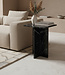 De Shanghai bijzettafel verenigt robuustheid en verfijnde eenvoud. Het vierkante blad en het kruisvormige onderstel in diepzwart marmer geven de tafel een strakke, karaktervolle uitstraling; het natuurlijke aderingpatroon maakt ieder exemplaar uniek. De tafel is veelzijdig inzetbaar als bijzettafel, plantentafel of kleine salontafel en voegt direct diepte en contrast toe aan moderne en industriële interieurs. Onderhoud Marmer is een natuursteen en gevoelig voor zuren en vocht. Reinig met een zachte doek en verwijder gemorste vloeistoffen direct om vlekken te voorkomen. Voor extra bescherming kunt u af en toe een speciale marmerolie of wax gebruiken. Kenmerken - Kleur: zwart - Materiaal: marmer (met mangohoutcomponenten) - Modern design met strakke lijnen - Elk exemplaar uniek in tekening en kleur - Combineert fraai met lichte meubels en natuurlijke materialen - Ook verkrijgbaar in wit (Beijing) en gemêleerd marmer (Seoel) De Shanghai bijzettafel geeft uw interieur direct karakter en warmte — een duurzame, opvallende keuze die jarenlang zijn kracht behoudt.