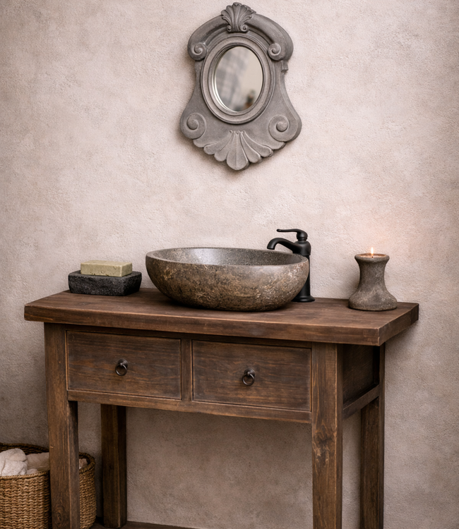 Ossenoog spiegels zijn helemaal de trend van nu in een landelijk interieur. Deze spiegel is maar liefst 56 cm lang en is voorzien van een vergrijsde finish. Aan de achterzijde van de spiegel zit een inkeping om aan de muur te hangen. De spiegel is maar liefst 7 cm dik! Getoonde prijs is inclusief levering in NL & BE.