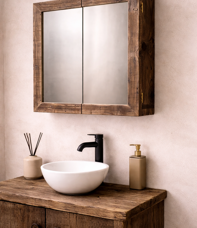 De Isabella spiegelkast is bijpassend bij het Isabelle badkamermeubel. De spiegelkast is voorzien van legplanken, een onderhoudsvrije achterwand. 2 greeploze deurtjes en 2 bevestigingspunten aan de achterzijde om op te hangen. De getoonde spiegelkast kan ook in andere houtsoorten of op maat gemaakt worden, neem hiervoor contact met ons op. De getoonde prijs is inclusief levering in NL & BE.