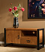 Dit televisiemeubel is afkomstig uit onze Boaz-serie en beschikt over één deur en een open vak. De kast is vervaardigd uit massief mangohout en metaal, waarbij het mangohout is voorzien van een beschermende laag. Daarnaast zijn het frame en de handgrepen afgewerkt met een zwarte lak. Afmetingen: - Breedte: 110 cm - Diepte: 45 cm - Hoogte: 55 cm Afmetingen van het open vak: - Breedte: 47,5 cm - Diepte: 42,5 cm - Hoogte: 17,5 cm Afmetingen van de lade: - Breedte: 42 cm - Diepte: 36 cm - Hoogte: 13 cm Afmetingen achter de deur: - Breedte: 47 cm - Diepte: 42 cm - Hoogte: 34 cm Voor onderhoud adviseren wij om het meubel af te nemen met een licht vochtige doek. De montage is eenvoudig en dient door uzelf te worden uitgevoerd.