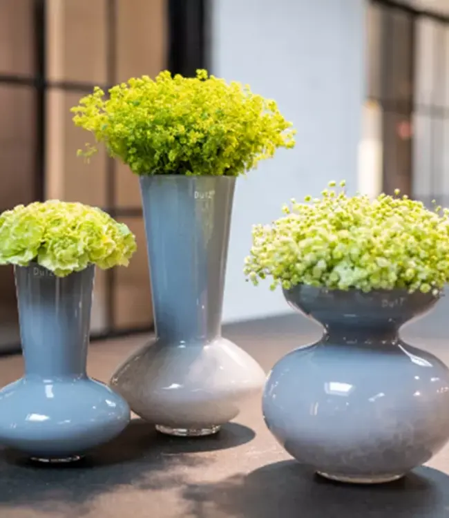 Elke Dutz vaas is uniek! Elke glazen vaas is mond geblazen door glasblazers uit Europese glasfabrieken. Elk product kan dus qua kleur en vorm licht afwijken van de afbeeldingen. Kleine afwijkingen zoals belletjes en krasjes zijn geen defecten maar zijn een gevolg van het ambachtelijke proces van traditioneel glasblazen. Ze verrijken het product en geven het een unieke uitstraling.