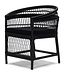 Onze Victoria Falls Buitenstoel voegt elegantie toe aan uw tuin of balkon. Gemaakt van weerbestendige zwarte rotan rond een sterk aluminium frame, heeft het een zacht katoenen kussen. De extra staven aan de onder- en achterkant maken het extra stevig.