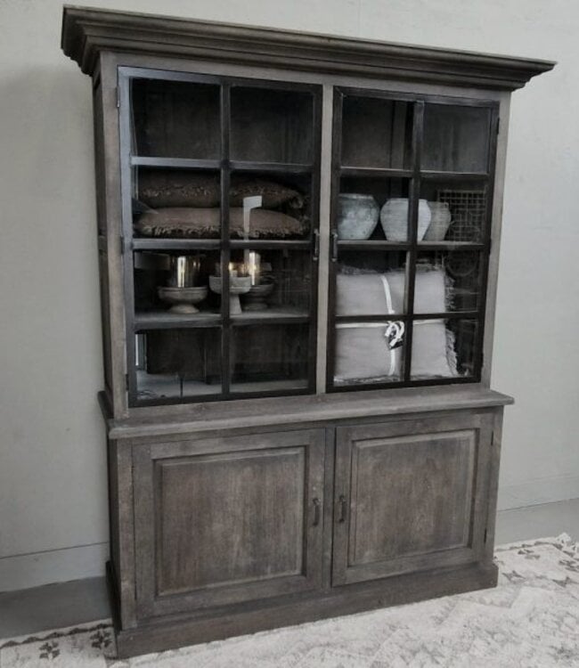 Ontdek de charme van de Vitrinekast Rani 4D. Deze prachtige kast met stalen deuren voegt een vleugje stijl aan elke ruimte toe. Met afmetingen van 220x140x50 cm biedt deze kast niet alleen voldoende opbergruimte, maar ook een sfeervol en landelijk accent.