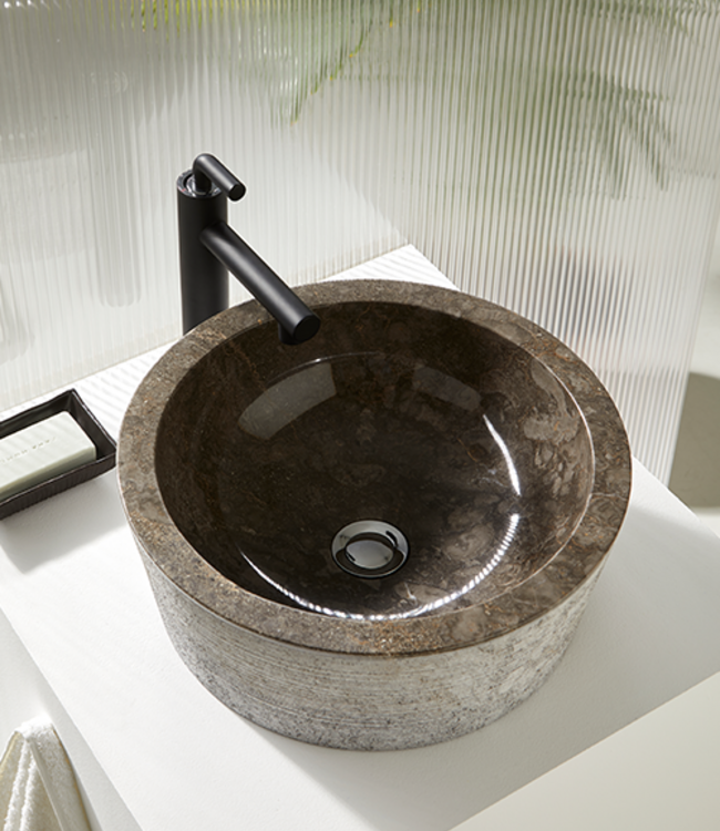 Deze hoogwaardige marmeren waskom is op traditionele wijze uit de massa gehouwen en is gemaakt van 100% natuursteen. De buitenkant is gefrijnd/geribbeld, de binnenkant is glad en gepolijst. Edel en duurzaam materiaal en voorzien van een afvoergat van 4,5 cm (Europese norm).