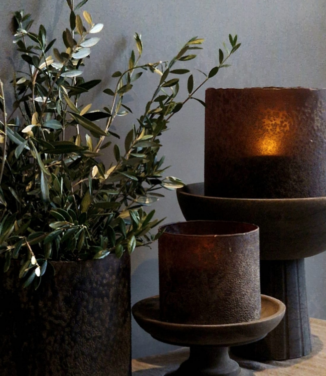 Windlicht Cilinder Glas Zwart Bruin H25xB25 Cm is gemaakt van prachtig donker verweerd glas. Plaats deze bijvoorbeeld in windlicht Vasco of Balthazar van Luksa en creëer direct sfeer.
