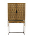 Deze wandkast op hoge poten heeft een roestvrijstalen frame en metalen handvatten. De deuren, gemaakt van hergebruikt eikenhout, lijken handgeweven en geven de kast een unieke uitstraling. Binnenin vindt u drie ruime compartimenten en vier kleinere compartimenten achter twee andere deuren, evenals een rek voor wijnglazen en een magnetische sluiting voor extra gemak. Een bijpassend tweelaags dressoir kan onder de bargkast worden geplaatst voor een samenhangende uitstraling, of apart worden gebruikt om dezelfde stijl in de kamer te weerspiegelen. Reinig met een droge doek. Afmetingen: H: 182 cm x B: 100 cm x D: 44 cm. Gemaakt van gerecycled eikenhout. Specificaties: diameter_max: 0.0, aantal deuren: 2, aantal laden: 2, demonteerbaar: Nee.