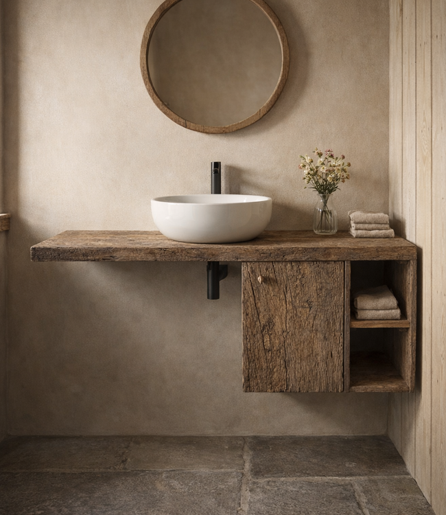 Lieke is een zwevend toiletmeubel, die wordt gemaakt in onze eigen werkplaats! Het toiletmeubel geeft ieder toilet of badkamer een stoer en landelijk uiterlijk. Het meubel wordt gemaakt van geborsteld oud eikenhout, die we zelf importeren en bewerken.